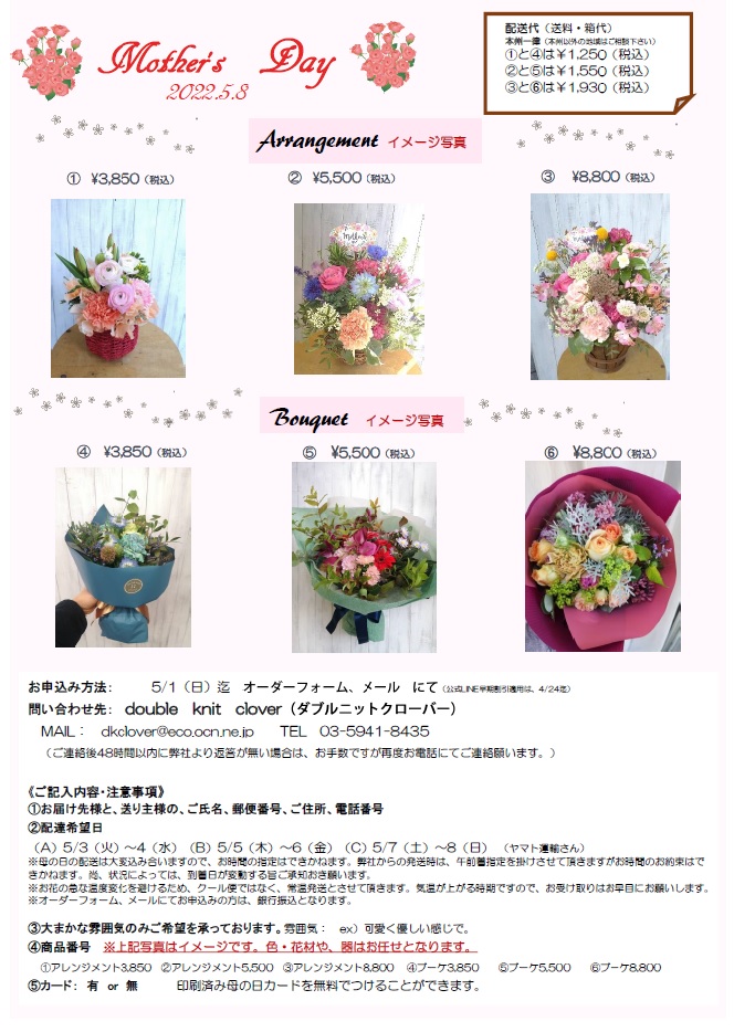 尚、母の日近くは混み合いますので、早目の発送も承っております。