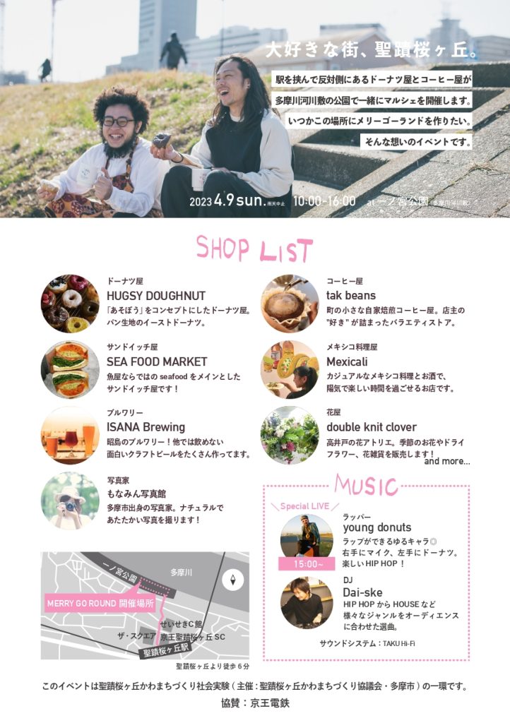 今週末 4/9(日)、聖蹟桜ヶ丘の河川敷イベントに出展します。