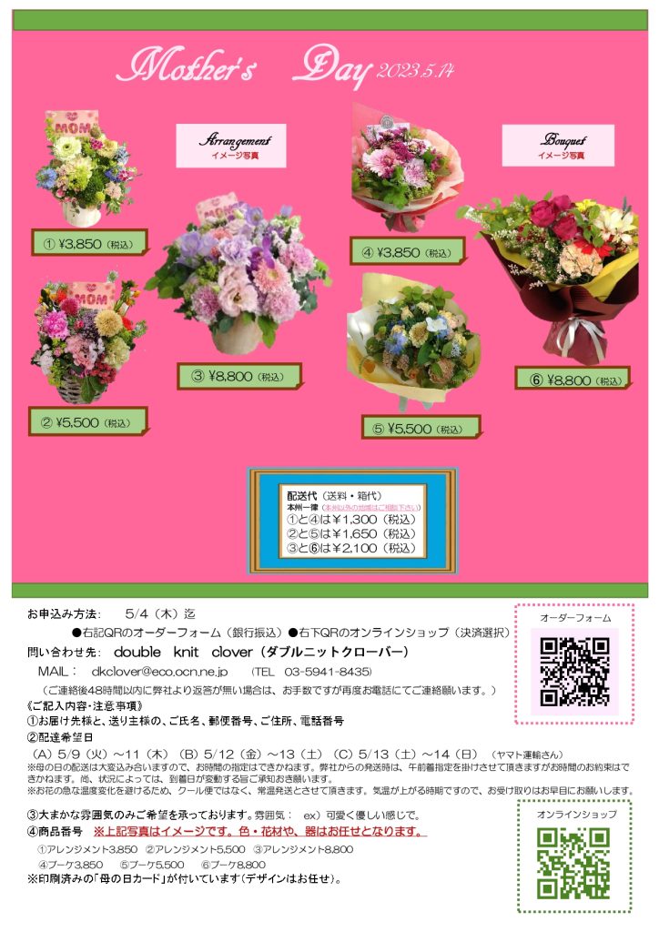 お花が、お母さん達や大切な方々の心を温かく包んでくれますことを願って準備をしております。
